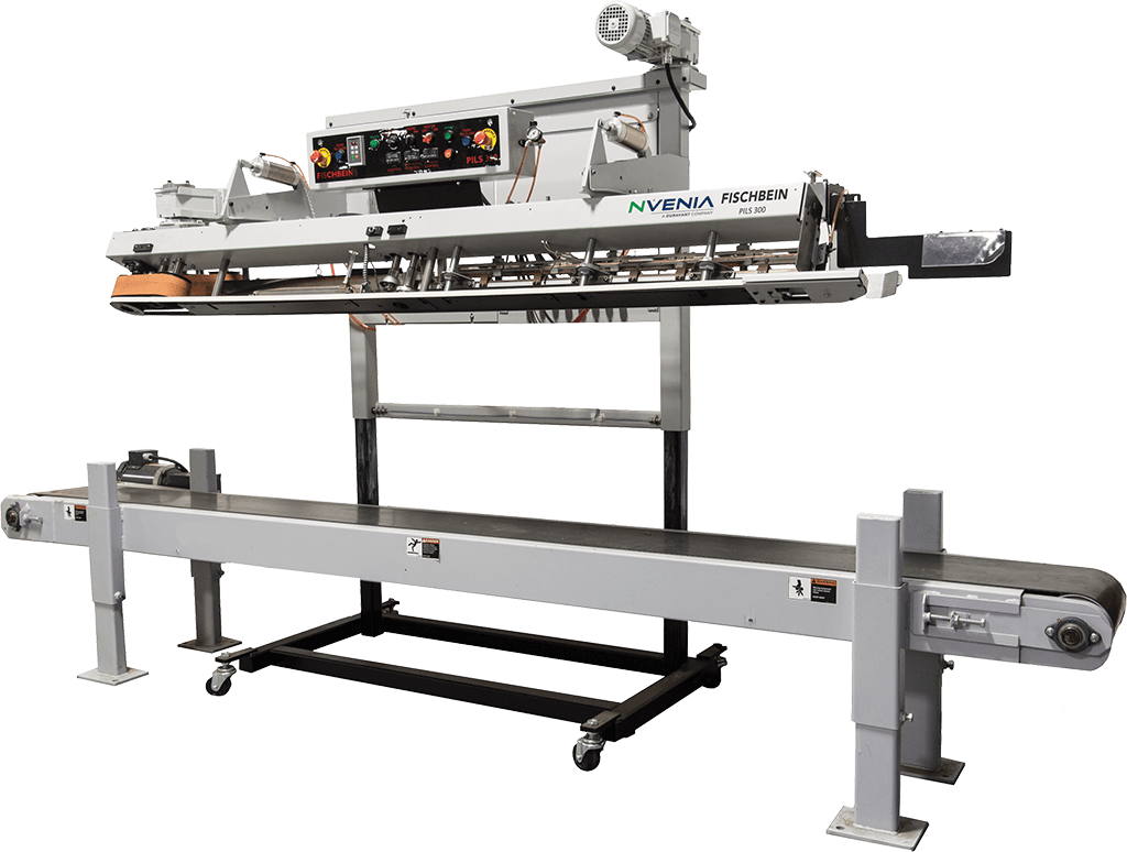 Sellador de forro interior PILS 300 Pinch, presenta un proceso de sellado continuo que sella secuencialmente el forro interior de la bolsa y luego pliega y sella la parte superior de la bolsa pinch prepegada.