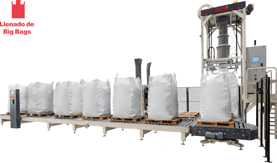 En grandes dimensiones, cuenta con estaciones de llenado de sacos FIBC (Flexible Intermediate Bulk Container) y de octabines de entre 500 y 2.000 kg. Los sistemas de llenado pueden tener diferentes configuraciones, según el tipo de producto, el tipo de saco Big Bag o octabin utilizado y según la capacidad requerida.